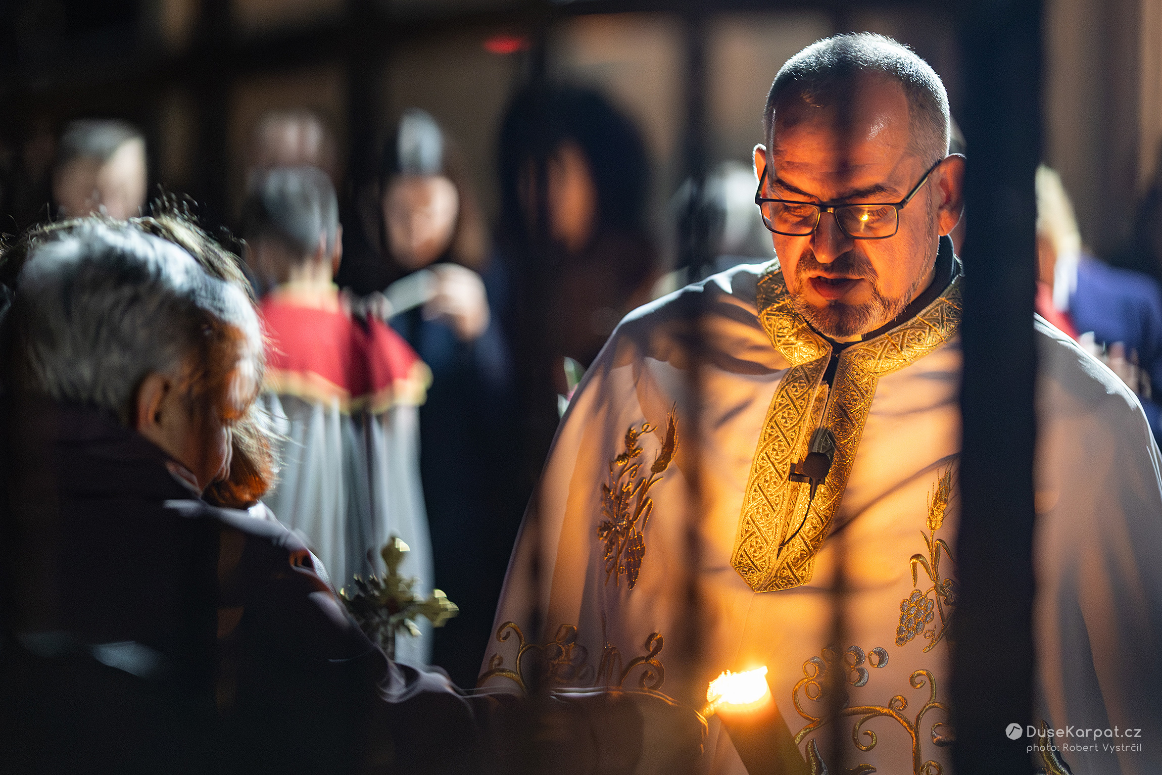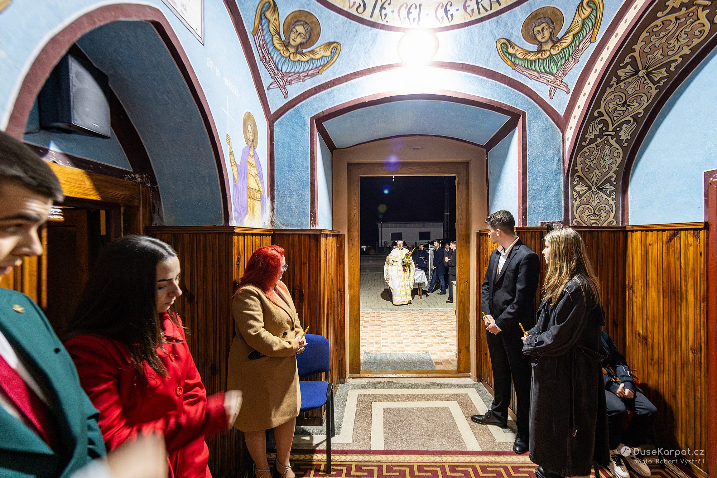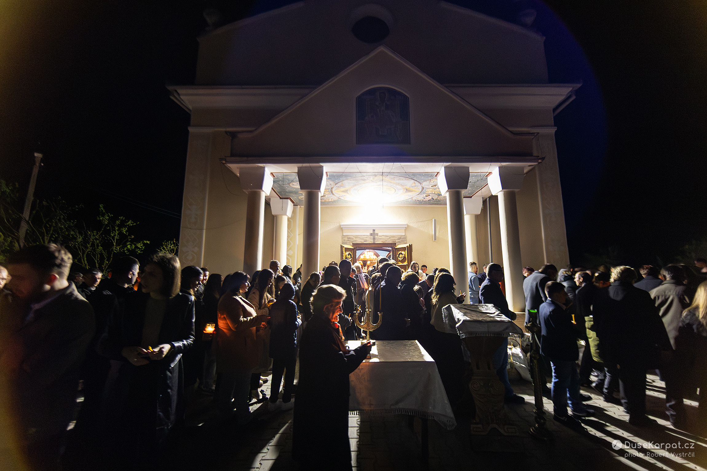 O půlnoci ze soboty na neděli přichází hlavní slavnost – půlnoční liturgie, zvaná vigilie, oslavující Kristovo zmrtvýchvstání. Obyvatelé obce se načančají a jdou ke kostelu (cerkvi) nechat si posvětit slavnostní košík. Zajímavostí, byť ve zdejších krajích nikterak vzácnou, je, že církevní obřad probíhá v obou kostelech v obci paraleleně ve stejný čas, na dohled a téměř i na doslech od sebe.